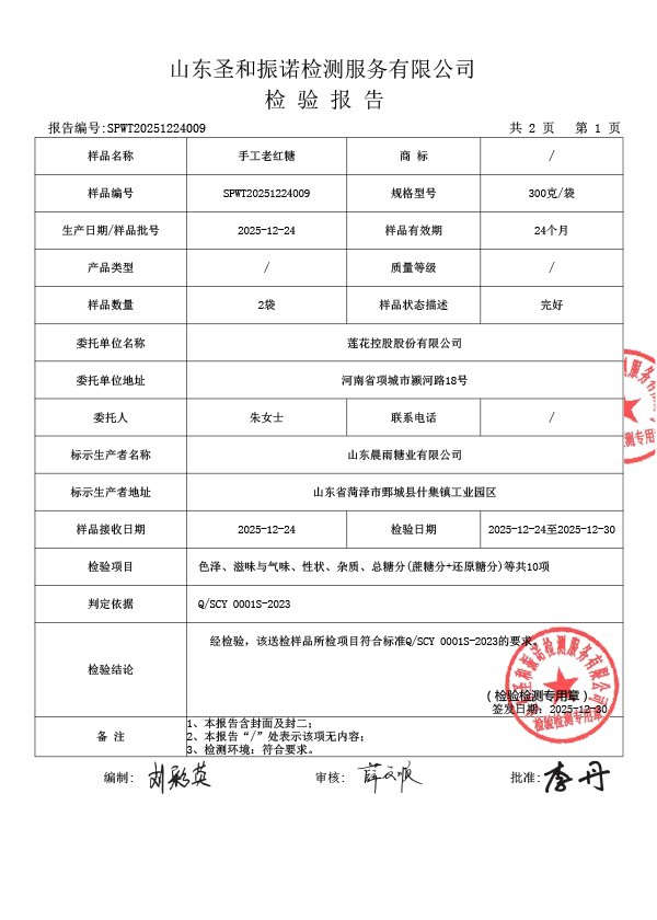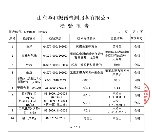 手工老紅糖檢測報告